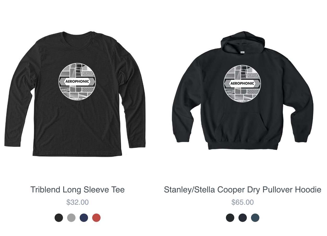 Ever since 2020 when we released the only other limited edition Aerophonic shirt, we've had ongoing requests for more. And with Bonfire as a partner handling printing and order fulfillment, it’s now possible to offer a much wider range of items, colors, sizes, and styles. So here you go folks - have at it!!
